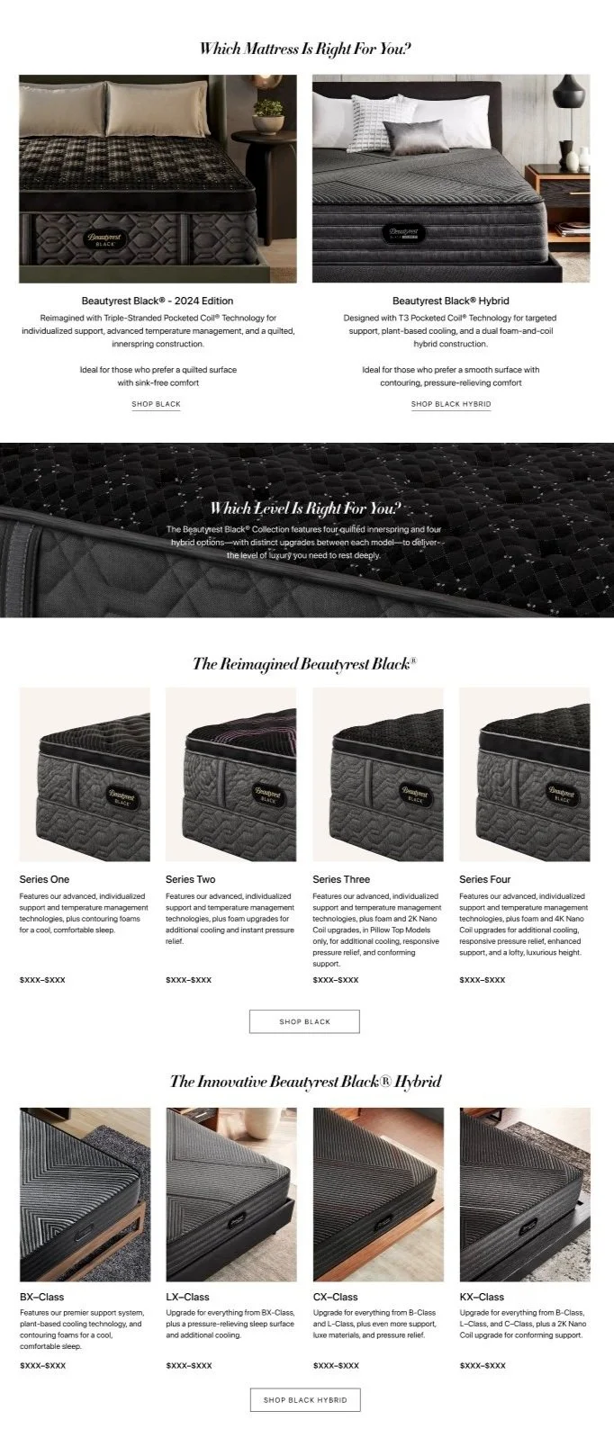 Task| Relaunch the Beautyrest Black® Collection, including 20 mattresses across four levels. Balance direction to create benefit-led copy while highlighting key technology.
